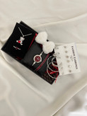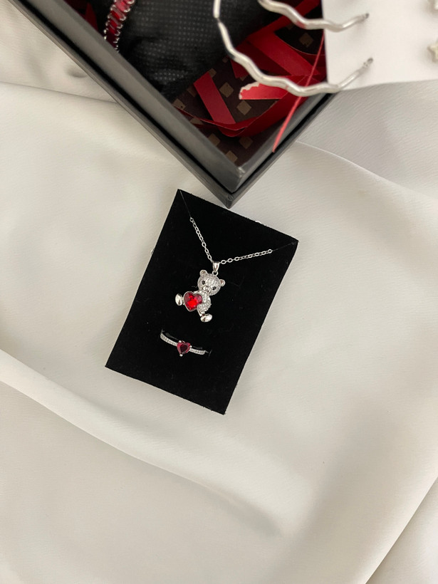 پک مراقبتی 6 عددی گوشواره - گردنبند خرس ولنتاینی - انگشتر پرنسسی + جعبه هاردباکس و پوشال )